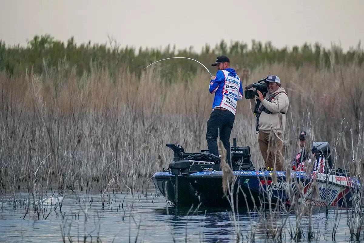 “Those fish were spawning a little bit deeper on those bushes, and that was definitely the best deal,” he said. “Really taking your time and fishing around slowly – trying to pitch to the outside of the bush first, then fish the center of it. Because the center of it, you’re going to get the bite, but typically you’re going to lose them. So, being methodical, being smart about the entry and the exit helped me throughout the week.”